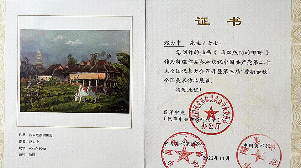 ● 2023年赵力中名师工作室负责人赵力中教授油画作品《铁血昆仑关》被中国美术馆收藏;作品《西双版纳的田野》在第三届全国美术作品展中展出;