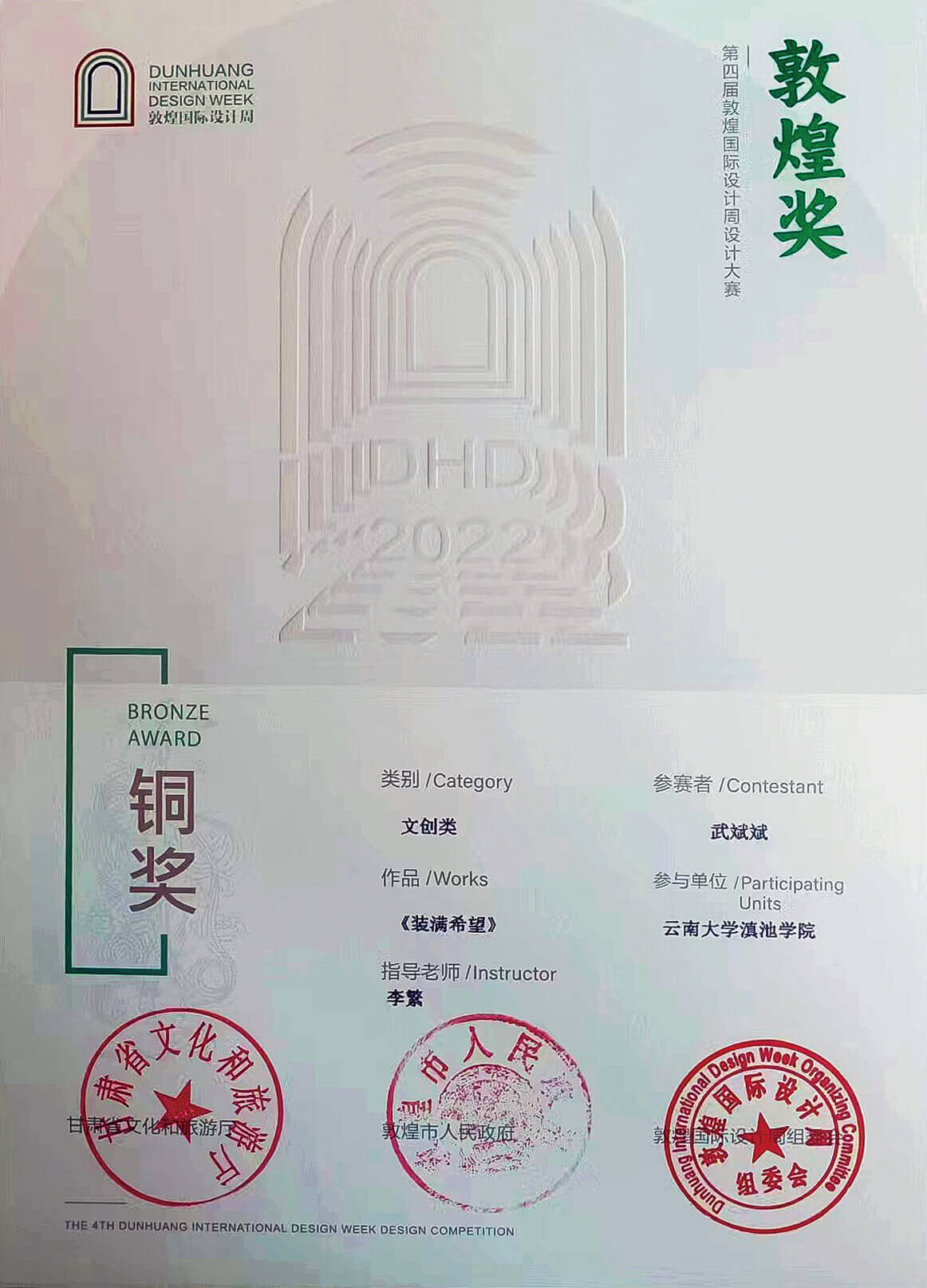 第四届敦煌国际设计周大赛,获得全国赛敦煌奖铜奖