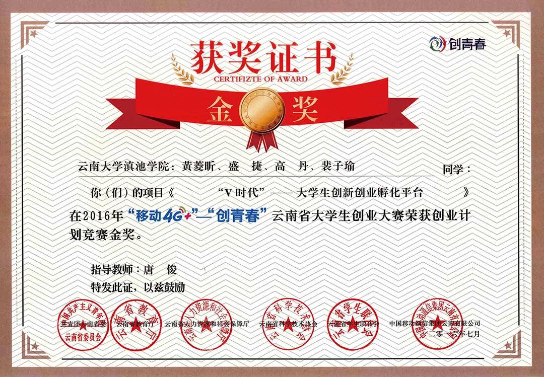 ● 荣获2022年云南省第十届“挑战杯·动感地带”大学生创业计划竞赛,获得铜奖1项;