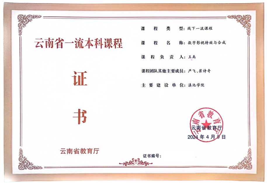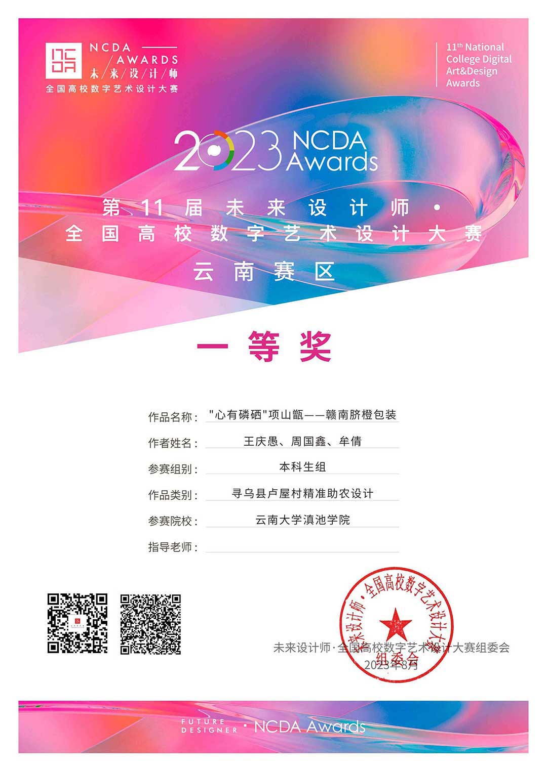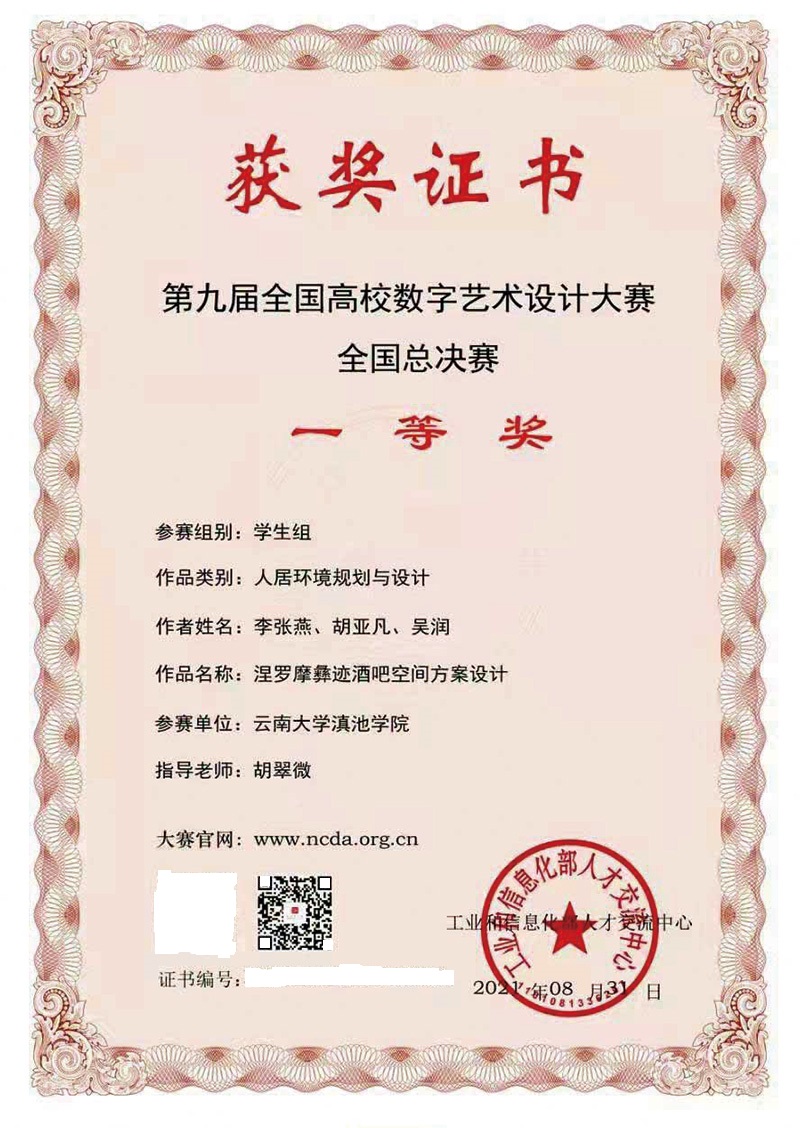 ● 2023年第十一届全国高校数字艺术作品大赛,获云南赛区一等奖5项,二等奖12项,三等奖10项,全国一等奖1项;