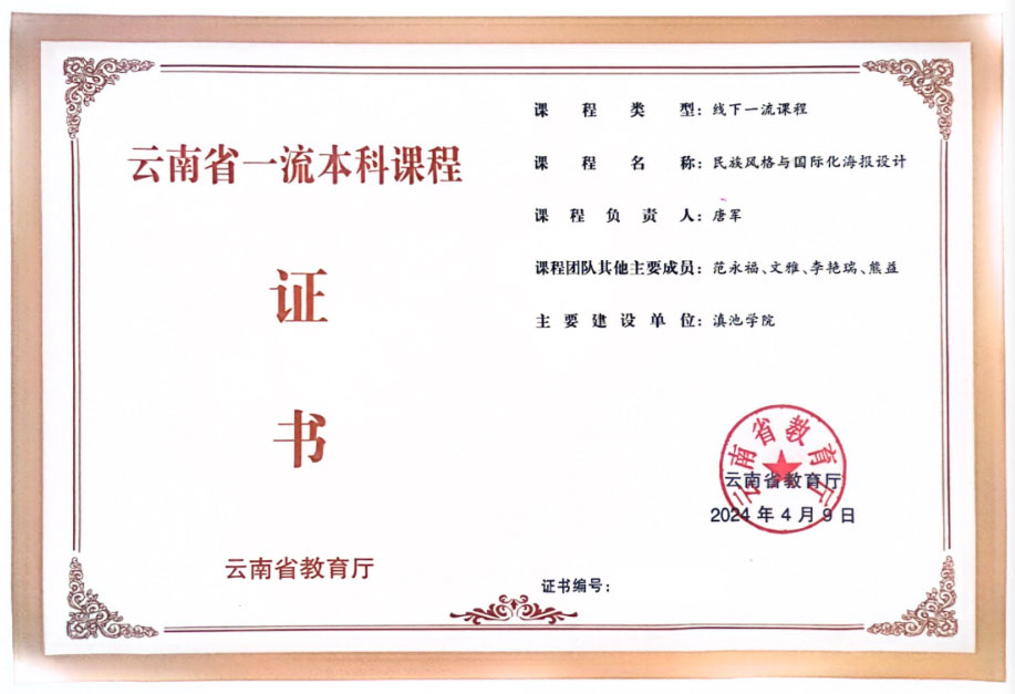 《民族风格与国际化海报设计》认证为云南省一流本科课程
