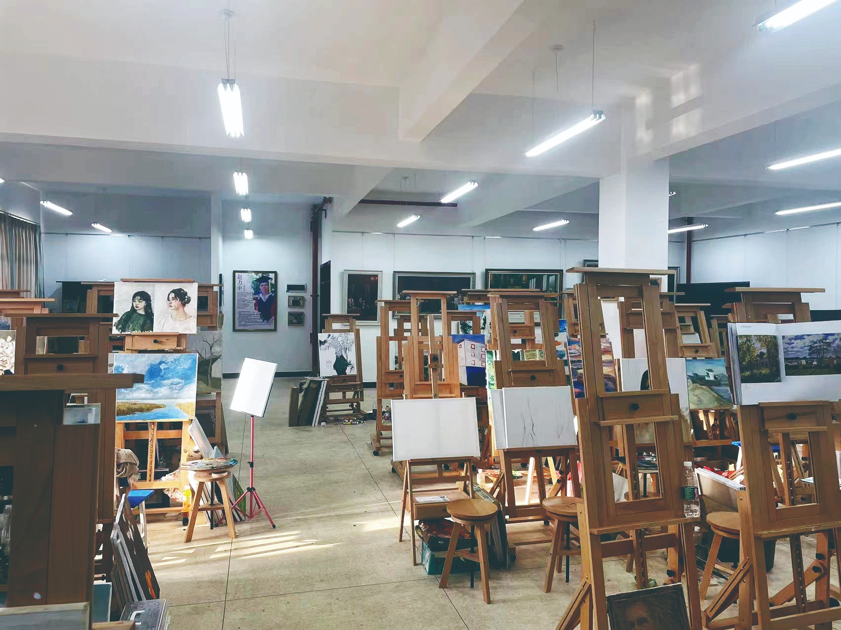 ●绘画专业实行工作室制,优化了课程体系,重视基础与个性创作的衔接。以“赵力中(国家二级教授)名师油画工作室”为引领,实现艺术名家、画家到一线开展特色课程教学;